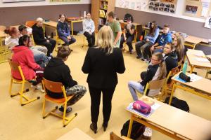 žáci 8. a 9. ročníku s Mgr. Z. Nétkovou, Mgr. K. Krňávkovou, A. Andělovou a B. Sedmerovou, DiS.