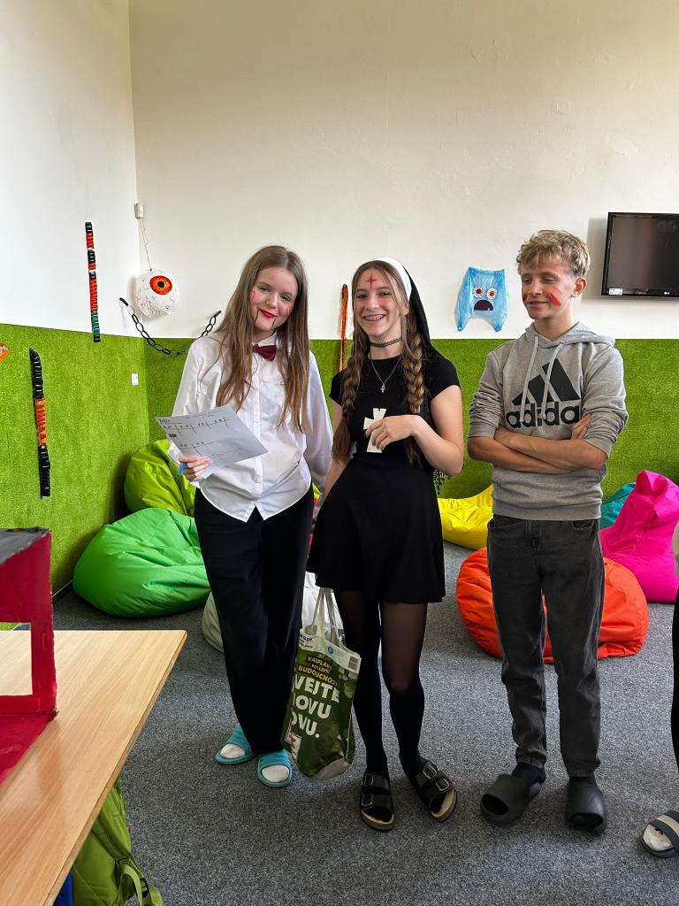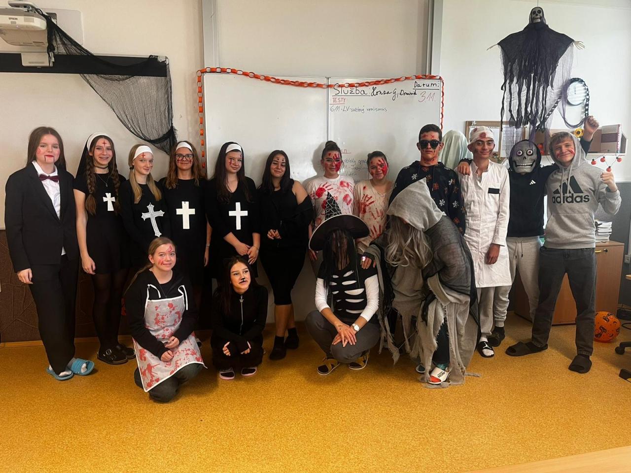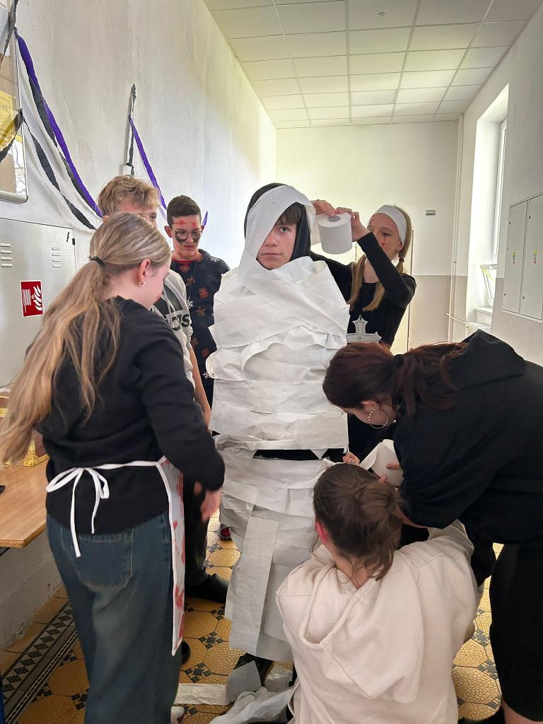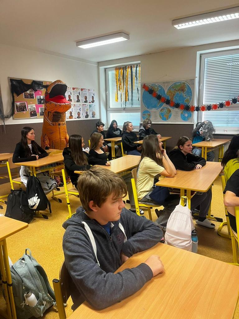 Kromě soutěže o nejlépe vyzdobenou třídu nás čekalo dvouhodinové soupeření v 7 cool halloweenských úkolech, kde se proti sobě postavily všechny třídy. Atmosféra byla napínavá, zábavná a místy i trochu strašidelná!